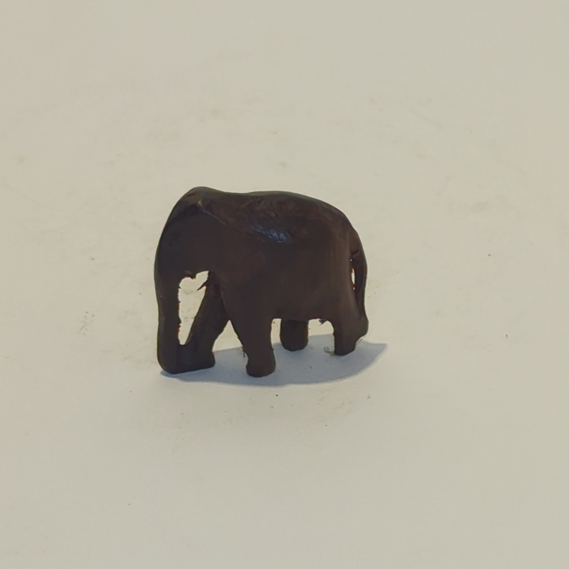 Handgeschnitzter Elefant aus Rosenholz – eine kleine Meisterleistung der Handwerkskunst. Das edle Holz mit seiner charakteristischen rötlich-braunen Färbung und feinen Maserung schafft eine warme, natürliche Ästhetik. Mit nur 3 cm Höhe passt diese Miniaturfigur perfekt auf Schreibtisch oder Regal. In vielen Kulturen symbolisiert der Elefant Weisheit und Glück – ideal als durchdachtes Geschenk oder Sammlerstück für Liebhaber handwerklicher Qualität.