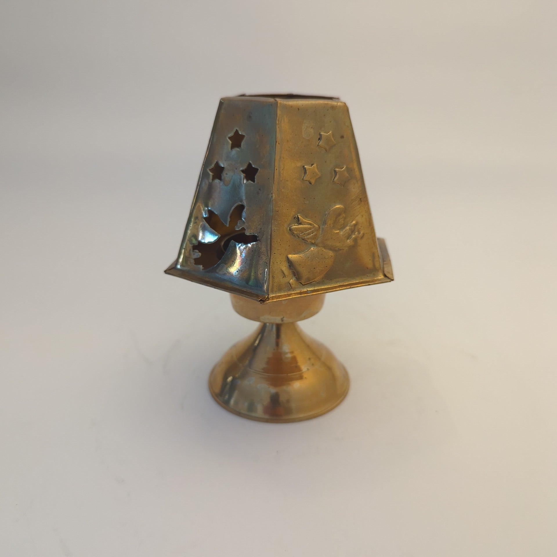 Teelichthalter aus Messing mit handgefertigtem Weihnachtsengel-Motiv. Das edle Material erzeugt warmes Lichtspiel und verleiht Ihrer Weihnachtsdekoration festlichen Glanz. Jedes Stück ist ein Unikat aus indischer Handarbeit. Maße: ca. 12,5 cm hoch, 10 cm Durchmesser. Perfekt für Teelichter und kleine Kerzen.