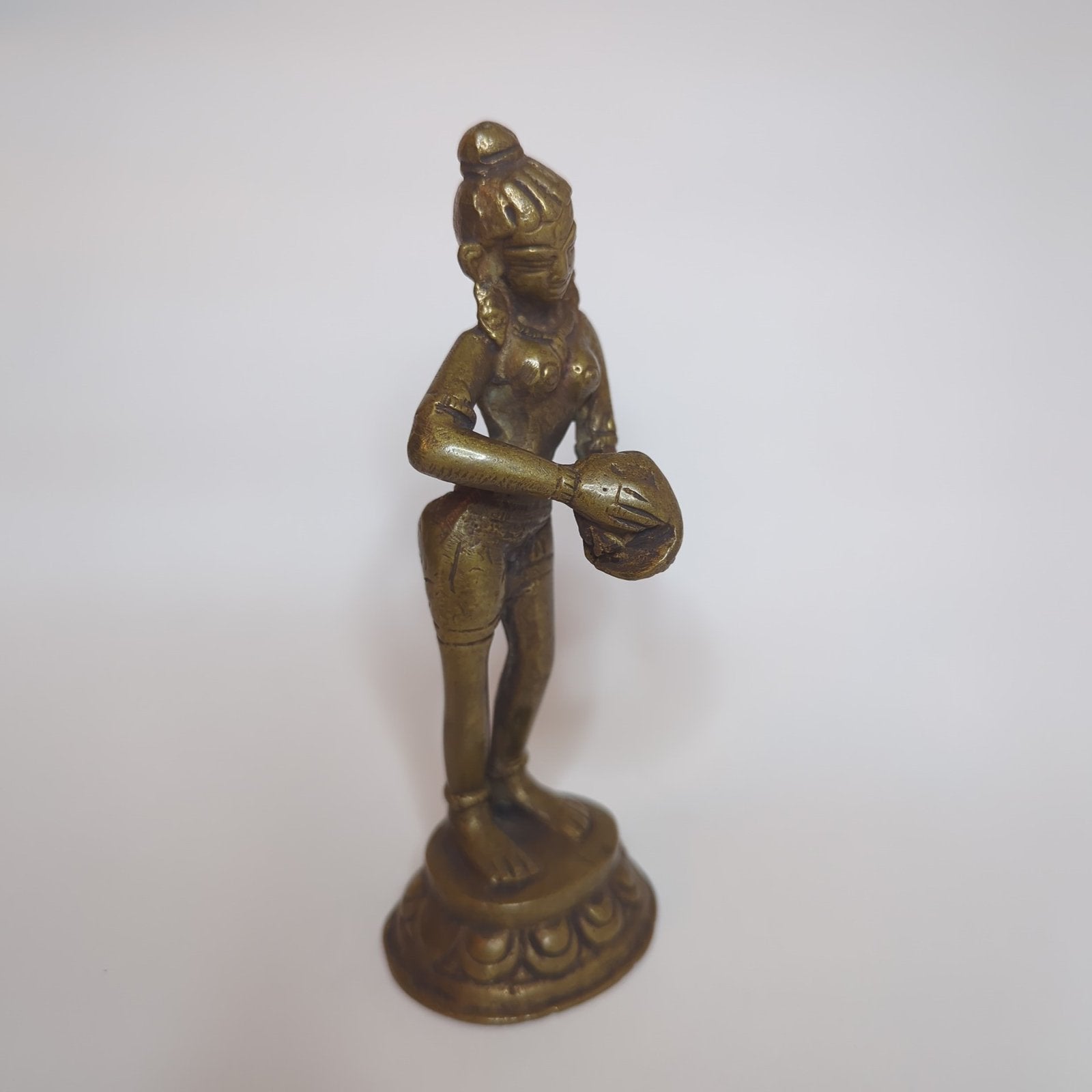 Tempeltänzerin mit Schale Messing Statue Indien – Handgearbeitet & Patiniert